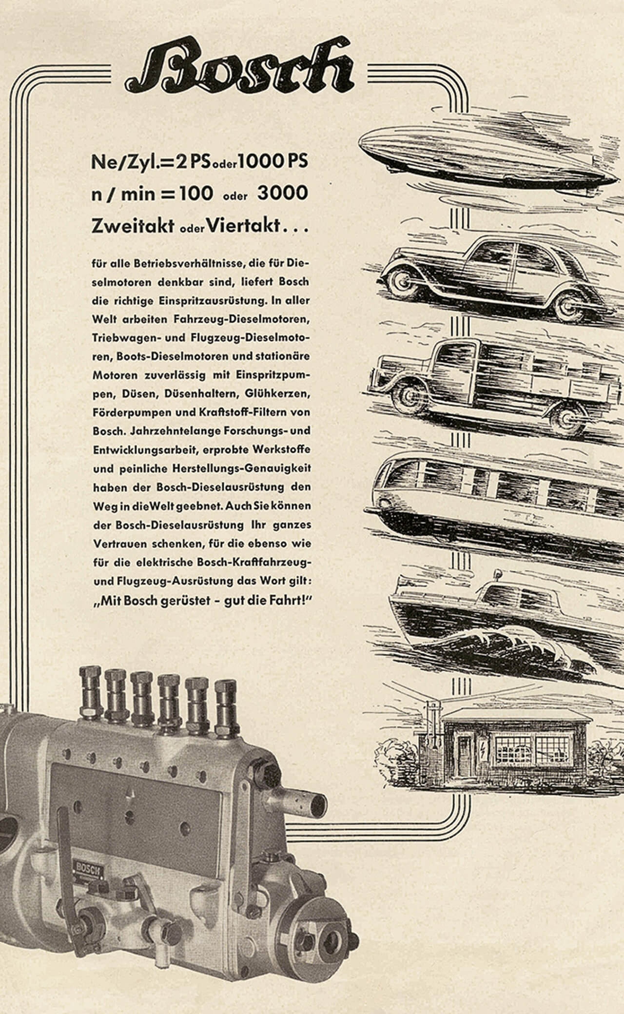 Hirdetés 1937-ből. A Bosch sokáig a zeppelinekkel reklámozta gyújtástechnológiáját
