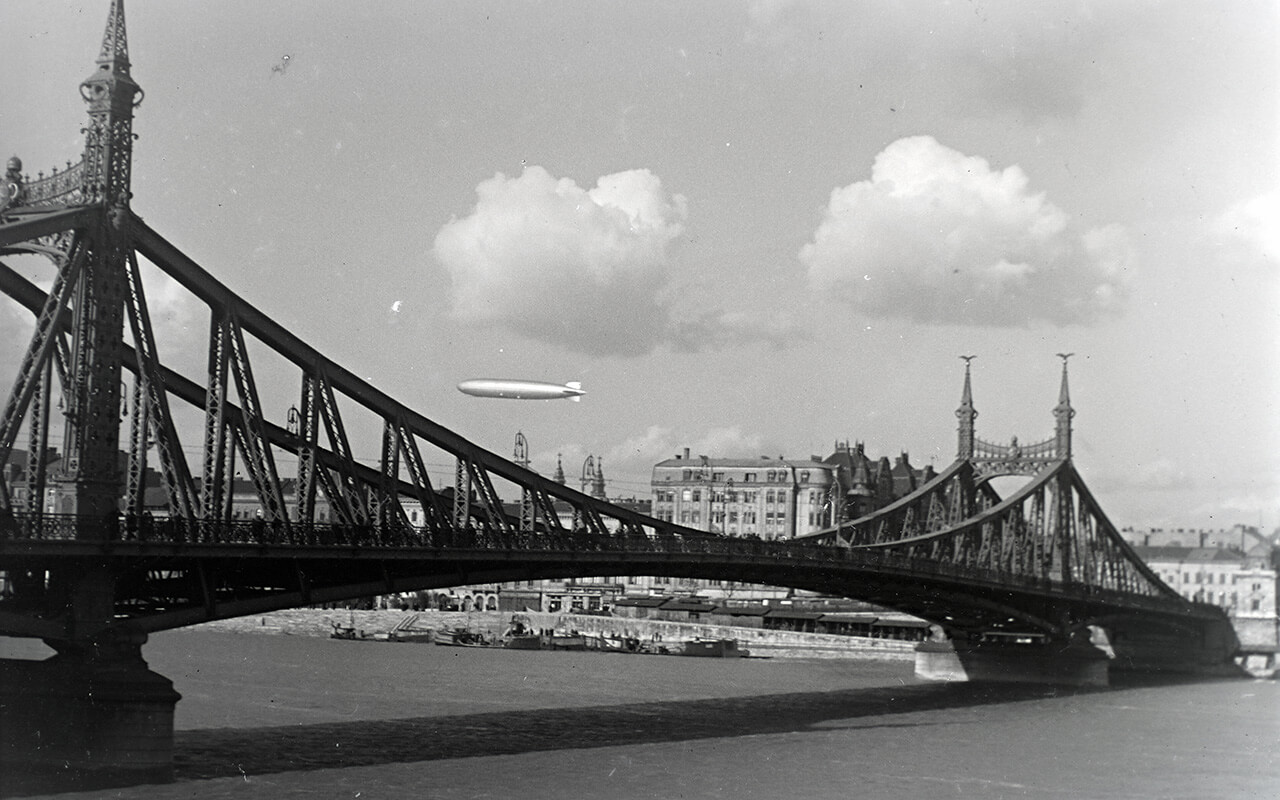 A Graf Zeppelin Budapest felett (A kép forrása: Fortepan, Révay Péter).
