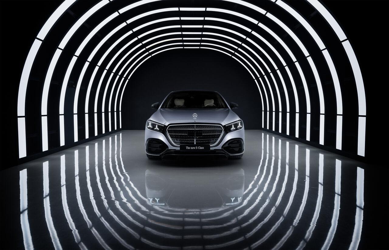 Még karakteresebb körvonalai és háromdimenziós krómcsillagokkal díszített hűtőrácsa tekintélyes fellépést kölcsönöz az új S-osztály számára. Fénydizájnja is új, ennek először része a stuttgarti modellek évszázados jellegzetessége, azaz a hűtőrács és a felette álló csillag megvilágítása. Az új, kettős csillagmotívumos DIGITAL LIGHT fényszórókkal mára kifinomult technika vette át a Benz korabeli míves gyertyalámpások helyét. Nagy felbontású mikro-LED fényforrások világítanak meg az előzőnél is 40 százalékkal nagyobb területet, miközben az ULTRA RANGE dinamikus távfény akár 600 méter hatótávval borítja fényárba az utat.